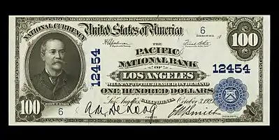 John Jay Knox's portrait was featured on the $100 National Bank Notes of the series of 1902.