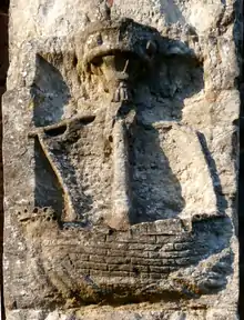 Ship from Lane's trading fleet, relief sculpture on exterior of Lane Chapel