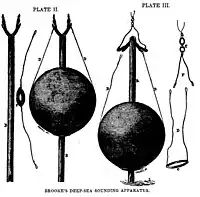 Brooke graduated in 1847[1] from one of the earliest classes of the United States Naval Academy[2] and became a lieutenant in the United States Navy in 1855. He worked for many years with Commander Matthew Fontaine Maury at the United States Naval Observatory (USNO), charting the stars as well as assisting in taking soundings of the ocean's bottom to determine the shape of the sea floor. Many believed the sea floor was flat, but all previous soundings as deep as eleven miles (18 km) could not find the ocean bottom. Part of this was due to powerful undercurrents far below, rivers in the ocean traveling in various directions. In the struggles with soundings, which nobody had done anything of value at great depths, it was Maury's failure with a unique device he invented that gave Brooke an idea of taking deep sea soundings. Brooke perfected a "deep-sea sounding device" which was used afterwards by navies of the world until modern times and modern equipment replaced it. At Maury's direction, Brooke also added a "core-sampling device" for taking samples of the material of the sea floor.
