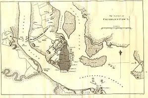 In early 1776, Rutledge learned that British forces would attempt to take Charleston. In response, he ordered the construction of Fort Sullivan (now Fort Moultrie) on Sullivan's Island in Charleston Harbor. When the British arrived, the fort was only half completed. General Charles Lee of the Continental Army, who had arrived a few days earlier with reinforcements from North Carolina, told Rutledge the fort should be evacuated, as Lee considered it indefensible. Lee said that the fort would fall in under a half an hour, and all the men would be killed.[15] In a note to the fort's commanding officer, Colonel William Moultrie, Rutledge wrote "General Lee ... wishes you to evacuate the fort. You will not, without [an] order from me. I would sooner cut off my hand than write one."[16] Rutledge noticed that Lee was arrogant, uncouth and unfit to control the militia. Rutledge, by virtue of being elected by the state, gained control of the militia. Rutledge let it be known that only he could order the militia to defend Charleston. During this time, Rutledge garnered the nickname "Dictator John" by virtue of getting his way with things.[17]