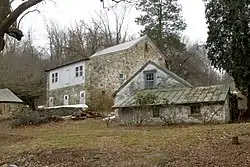 This complex includes five contributing buildings and one contributing site, including the farmhouse (c. 1800, 1827), bank barn (1834), garden and springhouse, wagon house, and the remains of the "necessary" and animal pen.[2]