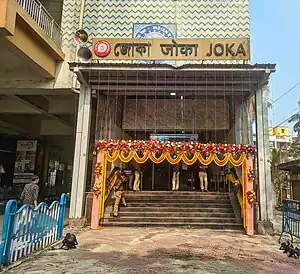 Joka is the elevated southern terminal metro station on the North-South corridor of the Purple Line of Kolkata Metro in Kolkata, West Bengal, India.[1] The station is located in Joka. It will be the terminal station of the Kolkata Metro Line 3 till the phase 2 of the project. In phase 3, the line will be extended 2 km more, till Diamond Park. The station was commissioned on 30 December 2022.[2]