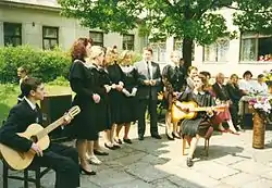 In November 1997, Jonava 3rd Secondary School was consecrated from Vincas Pranckietis, pastor of Jonava St. Jacob the Apostle Church. After Mass, the students and teachers visited the Jonava cemetery and laid flowers and lit candles on the dead teachers' and students' graves.