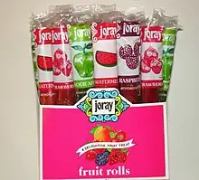 Joray Fruit Rolls are an apricot-based fruit snack produced by Joseph Shalhoub & Son, Inc, founded 1886 by George Shalhoub after immigrating from Lebanon. Joray Fruit Rolls were developed by Louis Shalhoub in the 1970s and have been produced in New York City since then. The fruit roll is a derivative of the Lebanese confection, amardeen, a thick paste made from dried apricots. Made from real fruit, these fruit leather products are fat-free and kosher.