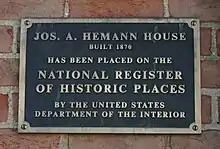 The Joseph A. Hemann House in Cincinnati, Ohio, was built in 1870 [2] by Joseph A. Hemann (1816–1897) and served as his residence for about ten years. It is located in Hamilton County in the neighborhood of Clifton on the corner of West McMillan and Hollister. Mr. Hemann was the founder of the Cincinnati Volksfreund in 1850.[3]