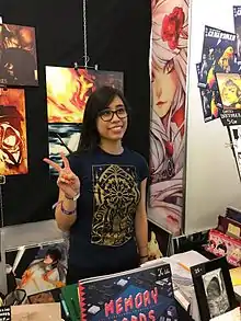 Between 2013 and 2014, new members were added to the team and appeared as extras: "Shun Geek" (Aurora) and "Sorina Chan", respectively in charge of costumes and illustrations.[26] Karim Debbache works on writing and directing the episodes; the latter left the team in 2016 to devote himself to his own show, Chroma, then returned to it in 2019.[26][4] It was also in 2019 that a fifth member joined the team as production manager, The SadPanda.[27]