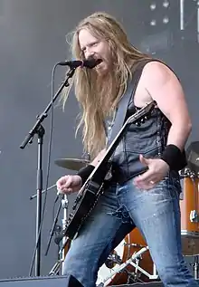 Jouni Kalervo Hynynen (born 15 February 1970) is the guitarist/vocalist in Kotiteollisuus, a Finnish heavy metal band.[1] He also writes the band's music along with his bandmates, and contributes majority of the lyrics. He has also written books, hosted a reality TV show called "Äijät" ('The men') with Jone Nikula and been a columnist for newspapers. He is known not only for his desperate and dark lyrics and his extraordinary looks and attitude, but also his sense of humour, which can be seen, for example, in NO SORI!, where Hynynen is the "special editor-in-chief". Hynynen, along with his Kotiteollisuus bandmates Hongisto and Sinkkonen, and Antti "Hyrde" Hyyrynen of Stam1na, his brother Janne (formerly of Mokoma) and Kaarle of Viikate use the magazine to make fun of tabloids, among other things.