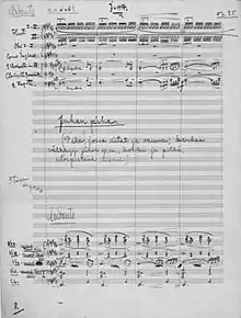Juha was Merikanto's second opera, following Helena in 1912.[3] Having composed Juha from 1919 to 1922, Merikanto submitted it to the board of the national opera in Helsinki who were worried by its modernity. As he had no response from them, Merikanto withdrew the work and did not compose any further operas.[4] A “safer“ version was written by Leevi Madetoja and premiered at the Finnish National Opera in 1935.[1] The third act of Merikanto's version was broadcast on 4 December 1957, the year before the composer’s death, and the entire opera on 3 December 1958.[5]