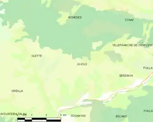 Jujols is located in the canton of Les Pyrénées catalanes and in the arrondissement of Prades.