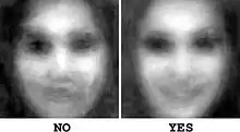Average faces generated using a modified Eigenfaces algorithm representing yes/no swipes on Tinder.