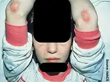 Other symptoms may include irritability, weight loss, and mouth ulcers.[2] When a child becomes irritable, fatigued, reluctant to socialize, and the face becomes flushed easily, physicians refer to this constellation of symptoms as "misery."[3]