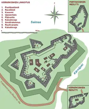 ![]() Plan of Kärnäkoski fortress and the Kärnäkoski and Partakoski redoubts | |