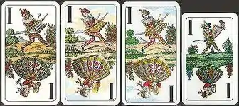• The cards also changed in appearance: they used a French pack instead of Latin playing cards. The traditional motifs of the trump cards, known today mainly in the Tarot pack, were replaced by pictures of animals, vedute, social scenes or other images.[20]