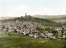 Shrouded in legend, the town's founding date is unknown. The name 'Königstein' means 'King stone'. The local legend states that King Chlodwig (466-511), founded the town after building a castle on a hill as well as a chapel.[3]