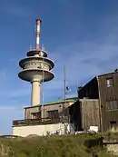 The telecommunication tower (a 'standard' tower; 100 m or 330 ft high) on the summit of the Köterberg was built in 1971 by the Deutsche Bundespost and handles wireless telephone traffic.