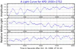 - ↑ Billéres, M.; Fontaine, G.; Brassard, P.; Charpinet, S.; Liebert, James; Saffer, R. A. (February 2000). "Detection of p-Mode Pulsations and Possible Ellipsoidal Luminosity Variations in the Hot Subdwarf B Star KPD 1930+2752". The Astrophysical Journal. 530 (1): 441–453. Bibcode:2000ApJ...530..441B. doi:10.1086/308369. S2CID 121152526.