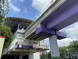 Kadugodi Tree Park (formerly known as Kadugodi) is an elevated metro station on the East-West corridor of the Purple Line of Namma Metro in Bengaluru, India which serves the suburban area of Kadugodi. Around this station, holds the Kadugudi Tree Park followed by some locations like IT Companies (Goldman Sachs, HP Enterprise, etc.) and many more.[1][2][3]