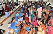 In 2004 there was a reaction from Orthodox Jews when they were told that they could not wear wigs made from this ritually gathered hair. Many wigs were destroyed but the price of the hair remained stable.[3] Traditionally the barbers employed to do the tonsuring were male and members of the Nayee caste. This caused some discrimination and requests from women that they would prefer a female barber.[2] A protest led by Radha Devi overturned the objections and she was recognized with the Nari Shakti Puraskar, presented by Ram Nath Kovind, the President of India.[2] The awards were made at the President's palace, Rashtrapati Bhavan, in New Delhi on International Women's Day 2019.[1] She met the minister Maneka Gandhi and afterwards she met the Prime Minister Narendra Modi.[5]