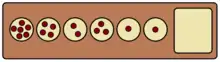 As mentioned above, if the last seed sown by a player lands in that player's store, the player gets an extra move. A clever player can take advantage of this rule to chain together many extra turns. Certain configurations of a row of the board can in this way be cleared in a single turn, that is, the player can capture all stones on their row, as depicted on the right. The longest possible such chain on a standard Kalah board of 6 pits lasts for 17 moves. On a general n-pit board, the patterns of seeds which can be cleared in a single turn in this way have been the object of mathematical study.[4] One can prove that, for all n, there exists one and only one pattern clearable in exactly n moves, or equivalently, one and only one clearable pattern consisting of exactly n seeds.