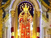 The feast day recognizing Mary's passage into Heaven is celebrated as the Feast of the Assumption of the Blessed Virgin Mary every year on 15 August there. The feast is preceded by hoisting of the flag on 6 August and ends with a Eucharistic procession around the village on 15 August evening. During these ten days of the feast, about 2 to 4 lakhs of pilgrims visit the church. The traditional Car Procession around the village with the miraculous statue of Our Lady of Assumption is the highlight of the feast. The car procession starts with a special Holy Mass on 14 August midnight and ends with a public procession of the Eucharist on 15 August evening.There is a ancestors acceptance that the statue is from Manila and which is brought by st.xavierand it was travelled through sea by Italian sisters.
