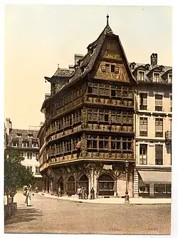 The Kammerzell House (Alsatian: Kammerzellhüs, French: Maison Kammerzell, German: Kammerzellhaus) is one of the most famous buildings of Strasbourg, France, and one of the most ornate and well-preserved medieval civil housing buildings in late Gothic architecture in the areas formerly belonging to the Holy Roman Empire.