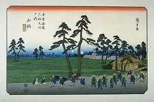 ![]() Hiroshige's print of Kanō-juku, part of the Sixty-nine Stations of the Kiso Kaidō series | |