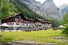 The Ueschinen Hut is situated in the Ueschinen Valley, at a height of 1,890 metres, and about two to three hours' walk away from the centre. It is usually open from May to October. During the summer it is used mainly as a base for climbing and hiking activities, but it may be used by groups at any time if weather allows. The hut is actually half of a cowshed, so sometimes it is a bit noisy at night. It can sleep up to 30 people and has a fully equipped kitchen with wood stove, a general living and eating room and a special toilet – there is no electricity and no shower.