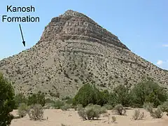 ![]() Kanosh Formation exposed on the flanks of Fossil Mountain, Millard County, Utah | |