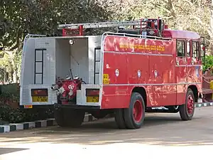 The department owns a pumper that was built by Dennis Brothers and delivered to the erstwhile Kingdom of Mysore in 1925 from England. It is the only petrol driven vehicle in the fleet and is brought out only during parades and rallies.[13] The department also owns a Bronto Skylift to reach the higher storeys of tall buildings in Bangalore.[14] The department owns similar equipment in the cities of Hubli and Mangalore.[15] Due to the lack of working fire hydrants in Bangalore city, the department has acquired two high capacity water tankers to send in case of massive fires.[16]