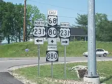 In March 2008, a large portion of the former length of KY 880 was redesignated as new routing for, from west to east, US 68, KY 80, and US 231. The portion of the highway that was formerly co-signed with US 231 is now designated solely as that highway.