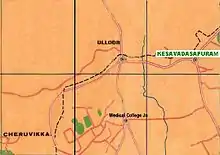 Kesavadasapuram is a major junction in Thiruvananthapuram city, Kerala, India. It is the meeting point of National Highway 66 and MC Road (State Highway 1).[1] While coming from the city centre, at the junction, the MC road goes to the right towards Kottayam and NH 66 goes to the left, towards Kollam. The place is named after Raja Kesavadas, the Diwan of erstwhile Travancore kingdom. It is also a major commercial and educational hub with many adjacent institutions like Mahathma Gandhi College, Mar Ivanios College, Mar Baselios Engineering College, Mar Gregorios Law College, Sarvodaya Vidyalaya, St. Mary's School etc.
