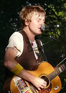 Since 1999 Mitchell performs and releases his solo work under the pseudonym of Bob Evans.[22] He created the name to play low-profile solo shows in Perth,[8] which was chosen "because it was written on a T-shirt I was wearing".[23] Mitchell elaborated, in 2013, "It was just a way to be incognito, to separate myself from Jebediah. I had to create this kind of pseudonym so I could do things without people really knowing about it and having expectations about it."[24] As Bob Evans, he concludes written communication with the sign offs: "XXXBOBXXX" or "XXXbobXXX", akin to SMS language.[25][26][27]