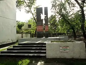 Khulna Public College is located on a 5.3482-acre campus in a residential neighbourhood.[14] The campus consists of student dormitories, individual residences for staff, a mosque, academic and administration buildings, gardens, and a playground. The academic buildings include classrooms, a library containing 5,824 volumes, laboratories for biology, chemistry, physics, geography, psychology and a modern computer lab.[15] There is a Shaheed Minar in the college premises which has been sculpted to commemorate the sacrifice of the martyrs of the Language Movement of 1952. This exceptional Shaheed Minar has been designed by architect Al Masum Billah, who is an ex-student of this institution.