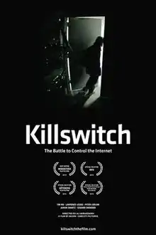Killswitch is a documentary film about the battle for control over the Internet. The movie is a collaboration between director Ali Akbarzadeh, producer Jeffrey Horn, writer Christopher Dollar[1] and Akorn Entertainment.[2] It premiered at the Woodstock Film Festival in October 2014, where it won the James K. Lyons Award for Best Editing of a feature documentary [3] and then made its international debut, playing alongside Citizenfour at the International Documentary Film Festival Amsterdam in November 2014.[4] In 2015, it screened on Capitol Hill, as well as film festivals on four continents (Europe, Asia, Australia, and North America).[2][5][6] Theatrical release was on March 1, 2015. Kathy Gill of GeekWire writes that "Killswitch is much more than a dry recitation of technical history. Director Ali Akbarzadeh, producer Jeff Horn, and writer Christopher Dollar created a human centered story. A large part of that connection comes from Lessig and his relationship with Swartz."[7]