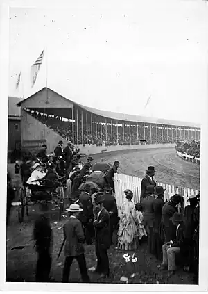 The 19th century fairgrounds ran from 24th Avenue in the west to 30th Avenue in the east and from Franklin Avenue in the north to 24th Street in the south. They included a racetrack, amphitheater and exhibition halls for agriculture and industry. Two highlights of the fair were an 1878 appearance by President Rutherford B. Hayes and the 1881 ascent of a hot-air balloon en route to the East Coast. Despite an impressive launch, the flight ended a few miles away in Ramsey County.[2] The businessman and civic leader William S. King was a sponsor and organizer of the expositions.[3]