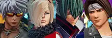 The King of Fighters employs different original characters as leads featuring (from left to right) K', Ash Crimson, Shun'ei and Kyo Kusanagi.