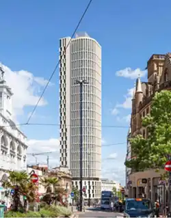 Kings Tower is an approved skyscraper[lower-alpha 1] that will be located on Castle Square at the junction of High Street and Angel Street in Sheffield, South Yorkshire. With a planned height of 120 m (390 ft) once completed,[1] Kings Tower will overtake Code Sheffield (once that is completed), and St Pauls Tower (current tallest building) as the tallest building in Sheffield and in Yorkshire.[2] Plans for the tower were submitted by architects Hodder + Partners in September 2020, calling initially for a 39-storey tower.[3] Planning permission was granted in December 2020,[4] and construction is planned to complete in 2023.[3] Amended plans were submitted in late 2022, adding a 40th floor to the project.