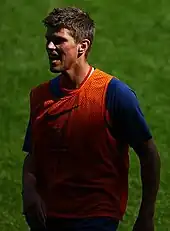 With the retirement of Ruud van Nistelrooy, Huntelaar became the new Netherlands national team coach Bert van Marwijk's first choice striker for the 2010 World Cup qualification match against Iceland in October 2008, and scored in a 2–0 victory.[109] Huntelaar was included in the preliminary squad for the 2010 World Cup in South Africa.[110] On 27 May 2010, Van Marwijk announced that the player would be part of the final squad of 23 participating in the competition.[111] On 24 June, he replaced goalscorer Robin van Persie in the 58th minute against Cameroon at the Green Point Stadium in Cape Town and scored the winning goal in the 83rd minute in a 2–1 win, taking his goal tally to 16 in 34 games for the Netherlands.[112] Huntelaar also came on as a substitute for Van Persie in the round of 16 game against Slovakia and in the quarter-final against Brazil.[113][114] He was an unused substitute in the final against Spain as the Netherlands lost their third World Cup final 0–1 due to a late goal by Andrés Iniesta.[115]