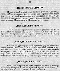 Danilo used the Law of Petar I Petrović-Njegoš as an inspiration for his own General Law of the Land from 1855 (Zakonik Danila Prvog).[2] Danilo's Code was based on the Montenegrin traditions and customs and it is considered to be the first national constitution in Montenegrin history. It also stated rules, protected privacy and banned warring on the Austrian Coast (Bay of Kotor).
