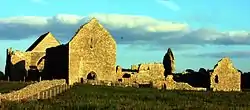 A section at the south end of the church formed the refectory. In the eastern end of the refectories south wall is an opening 2.7 metres (9 ft) wide, which would have featured steps leading up to a rostrum.[15] Next to the refectory, to the south east, is a section of the monastery the function of which is difficult to ascertain. The walls here are in very poor condition, and having been reshaped several times to serve as a fence, give no indication as to the original placement of the windows.[13] This may possibly have been the novices' rooms.[14]
