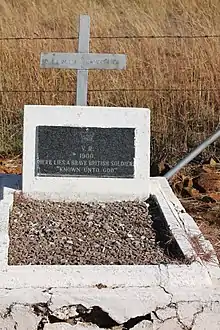 The phrase was used again by the CWGC for unknown graves of the 1939-45 war in which use it is preceded by the phrase "a soldier of the Second World War" or a variant thereof. It has been used on the gravestones of the British dead of the 1899–1901 Second Boer War, for example at Spion Kop where some graves read: "A brave British soldier – known unto God", though these stones do not seem to be contemporary to the war.[19] The phrase continues to be used in modern works, for example a British poet included it as a line in a work to honour the dead of the Malaysia Airlines Flight 17 in 2014.[20]
