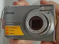 The Easyshare C813 is a discontinued digital camera made by Kodak. It features an 8.2-megapixel camera with 3× optical zoom; a 2.4-inch colour LCD display; digital image stabilization; high ISO setting (up to 1250); video capture; 16 scene modes and three colour modes; on-camera picture enhancement and editing tools; 16 MB on-camera storage, expandable with an SD card. The manufacturer recommends 2 GB SDHC and claims 16 GB is the maximum.[1] 32 GB 40 Mbit/s SDHC cards have been recorded to be compatible and the true maximum comparable SDHC memory size and read/write speed.[2][3][4]