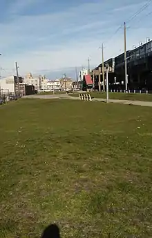 In 2001 construction commenced on a new residential community that revived the name Arverne-by-the-Sea. Comprising single and multi-family homes to the south of Rockaway Freeway, it includes a retail plaza on the southern side of the subway station, adjoining Kohlreiter Square.[1] Before 2001, there was a Joseph P. Addabbo Family Health Center on the southern side of the 67th street subway station, and a synagogue across the street from the health center. The synagogue burned down in 2001, and the family health center moved to a new building on Beach 62nd street after it was built in 2005. The old building was torn down in 2006 during the construction of the retail plaza.