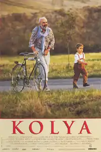 Kolya (Czech: Kolja) is a 1996 Czech drama film about a man whose life is reshaped in an unexpected way. The film was directed by Jan Svěrák and stars his father, Zdeněk Svěrák, who also wrote the script from a story by Pavel Taussig.[3] Kolya earned critical acclaim and won the Academy Award for Best Foreign Language Film and Golden Globe Award for Best Foreign Language Film.[4]