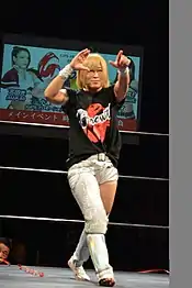- ↑ "無期限活動休止の理由は、内蔵の疾患によるものです。治療と静養に務める為に、活動休止させて頂く事を選択しました。また万全の体調で皆様の前に立てるように、治したいと思います。8/14新木場では、REINAでの最後の試合を頑張ります。よろしくお願い致します。". Twitter. Retrieved 17 June 2019.