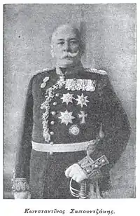 Konstantinos Sapountzakis (Greek: Κωνσταντίνος Σαπουντζάκης; c. 1846–1931) was a Hellenic Army officer. He is notable as the first head of the Hellenic Army General Staff and as the first commander of the Army of Epirus during the First Balkan War.