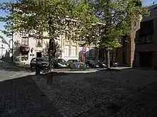 The Hansards rented the Oosterlingenhuis ("Easterling house", it refers to Germans) from 1442 as their own guildhall. In 1478 its new guildhall buildings at the Oosterlingenplein were completed. But the kontor continued to use the canteen of the monastery of the Carmelite order.[1]: 139–140 The monastery hasn't survived, while the façade of the Oostenlingenhuis doesn't exist anymore. [3]: 181, 184