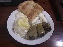 Tavë Prizreni is a traditional regional casserole from the southern city of Prizren. It is made with lamb, eggplants, green peppers, onions, tomatoes and is served hot. Sarma is also another popular lunch dish which (although not limited to) consists of minced meat wrapped with cabbage or vine leaves.[11]