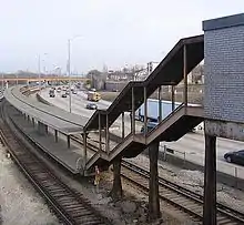 Kostner is an abandoned rapid transit station in the West Garfield Park neighborhood of Chicago, Illinois. The station served the Chicago Transit Authority's Congress Line, which is now part of the Blue Line. Kostner opened on August 5, 1962; it was one of two stations on the Congress Line which was not opened with the line on June 22, 1958.[2] The station closed on September 2, 1973, due to low ridership.
