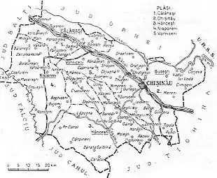 After the 1938 Administrative and Constitutional Reform, this county merged with the counties of Tighina, Cetatea Albă and Orhei to form Ținutul Nistru.